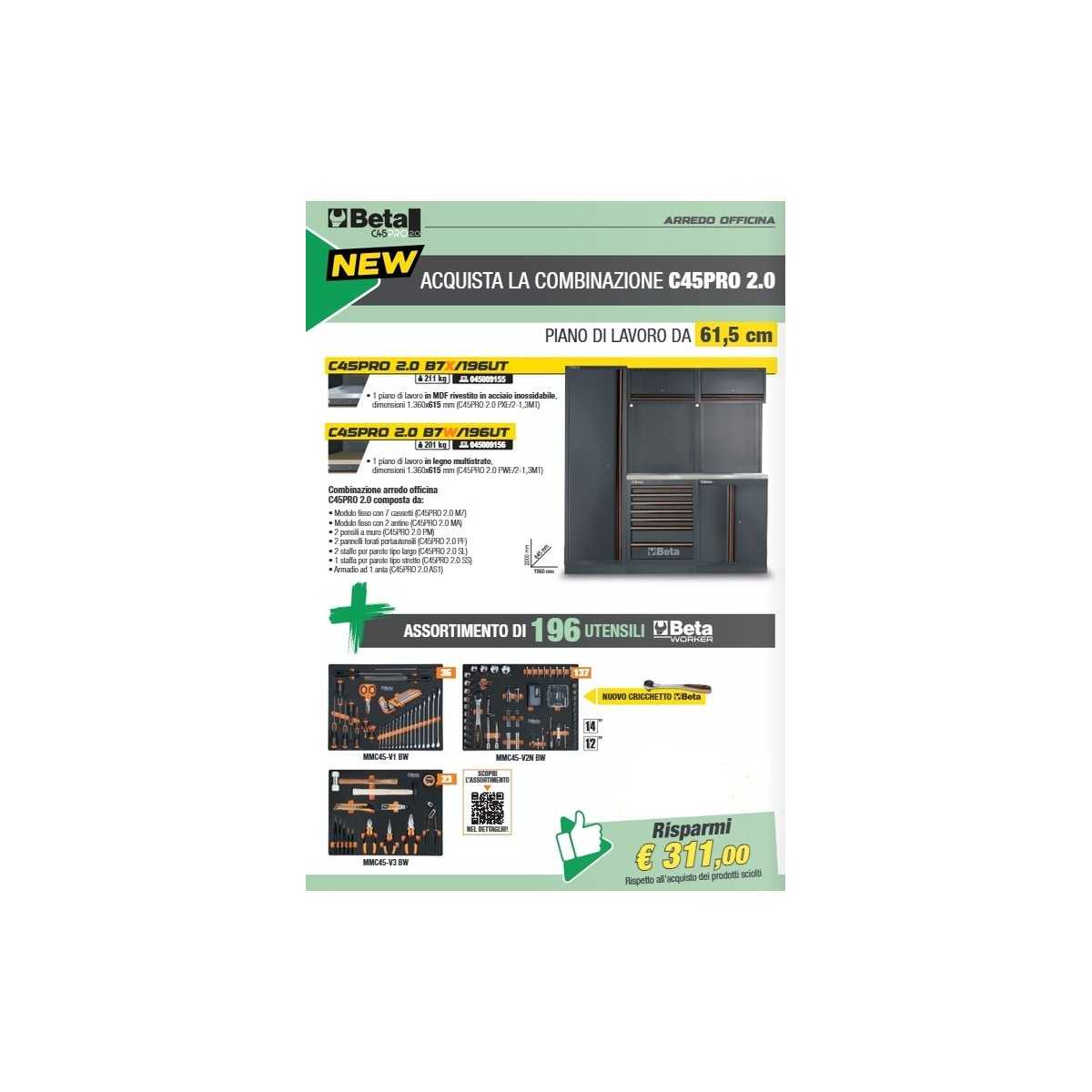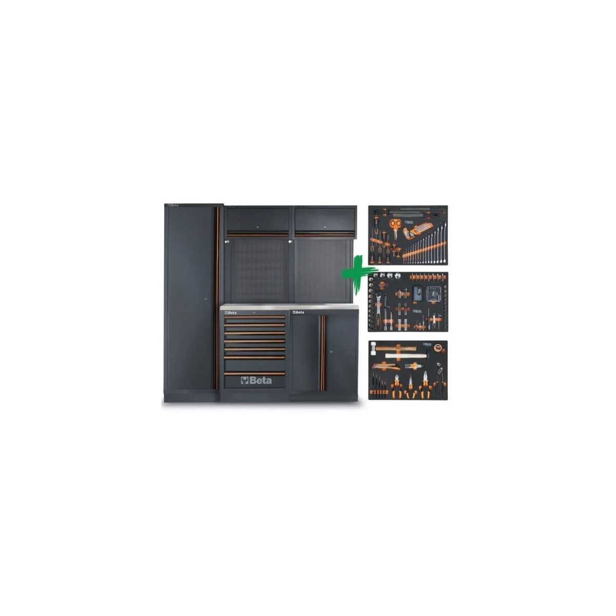 Combinazione arredo officina C45PRO 2.0 B7X con assortimento di 196 utensili universali Beta WORK