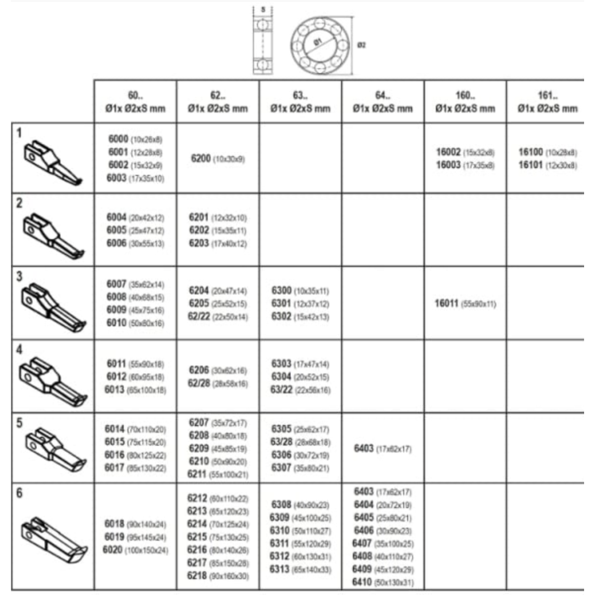 6000-6010, 6200-6205, 62/22, 6300-6302, 16002, 16003, 16011, 16100, 16101