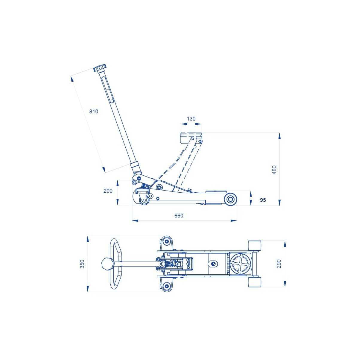 • Design completamente innovativo, punti presa super ribassati, manico ergonomico, supporto piattello a base ampia, piattello in gomma, ruote in nylon, comando di discesa manuale, certificato CE.