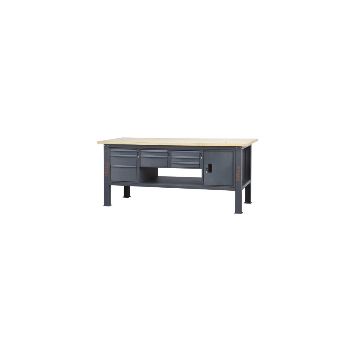 Banco da lavoro 2,1 m con piano in legno, 8 cassetti e modulo anta BETA C58BC-W2,1 8CA