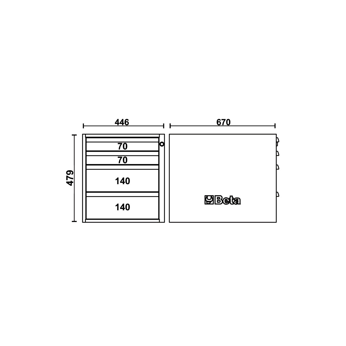 Cassettiera altezza 479 mm con 4 cassetti, per banchi componibili C58BC BETA C58CSH 4C