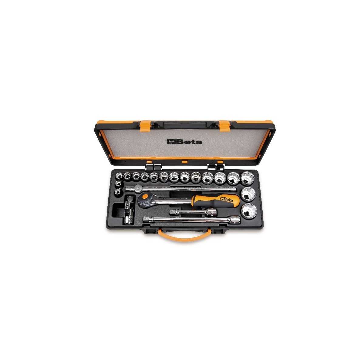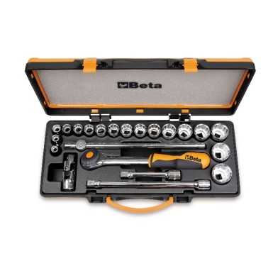17 chiavi a bussola esagonali e 5 accessori in termoformato rigido in cassetta di lamiera art. 920A/C17HR