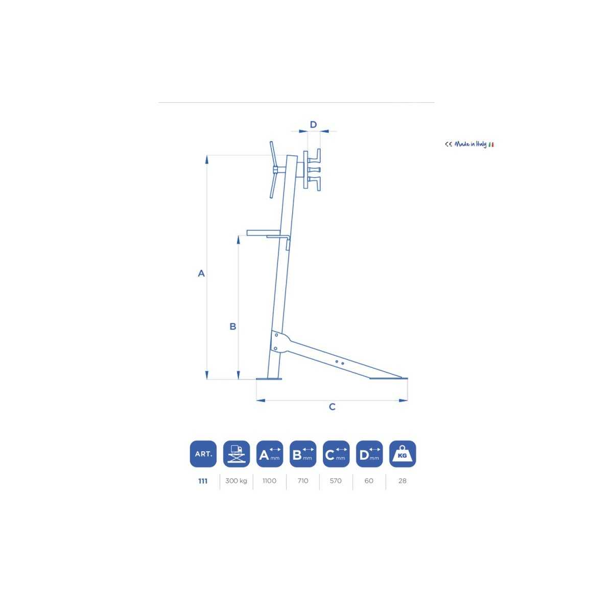 Ѵ Il cavalletto per motori OMCN 111 è realizzato in acciaio saldato verniciato a polveri per offrire sicurezza e stabilità nelle piu’ svariate condizioni di utilizzo.