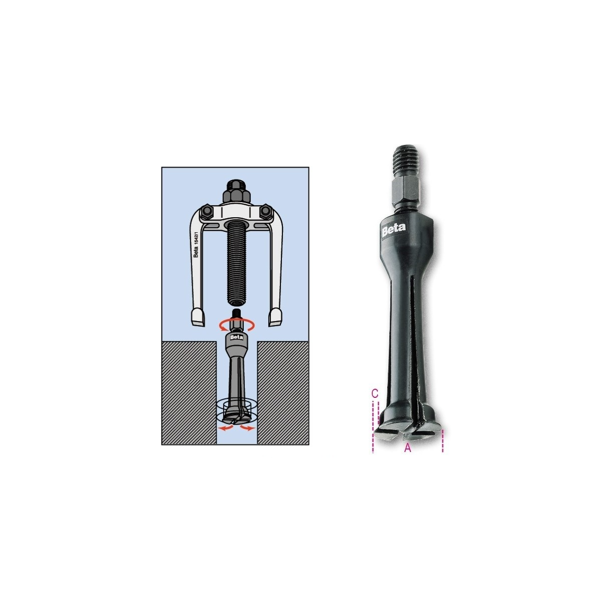 Manovrando la vite di regolazione, si fa presa sull' estremità opposta del pezzo da estrarre (cuscinetto, bronzina, bussola, camicia…) attraverso l'espansione dei settori