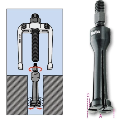 Manovrando la vite di regolazione, si fa presa sull' estremità opposta del pezzo da estrarre (cuscinetto, bronzina, bussola, camicia…) attraverso l'espansione dei settori
