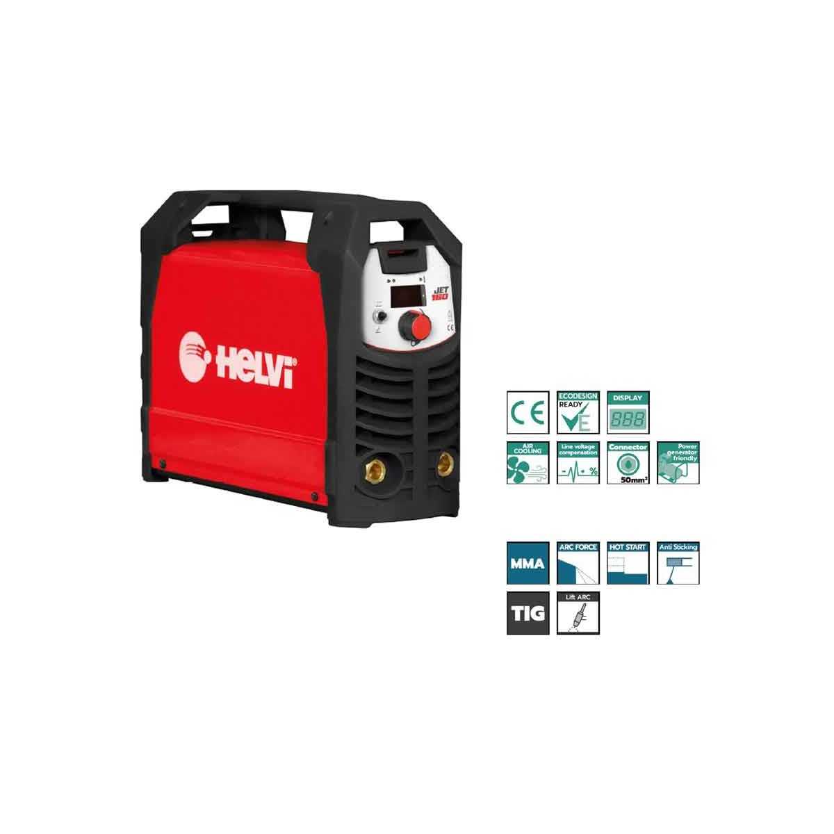 Helvi JET 160 Saldatrice inverter a elettrodo MMA e TIG con accessori e valigetta