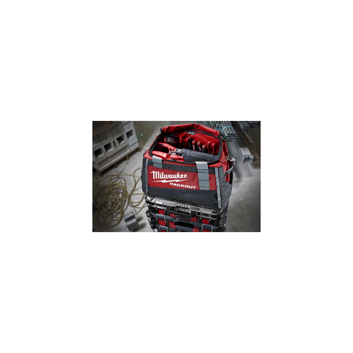 La borsa porta utensili 500x310x350mm di Milwaukee fa parte del sistema PACKOUT, il rivoluzionario metodo di stoccaggio e trasporto delle attrezzature in cantiere completamente modulare.