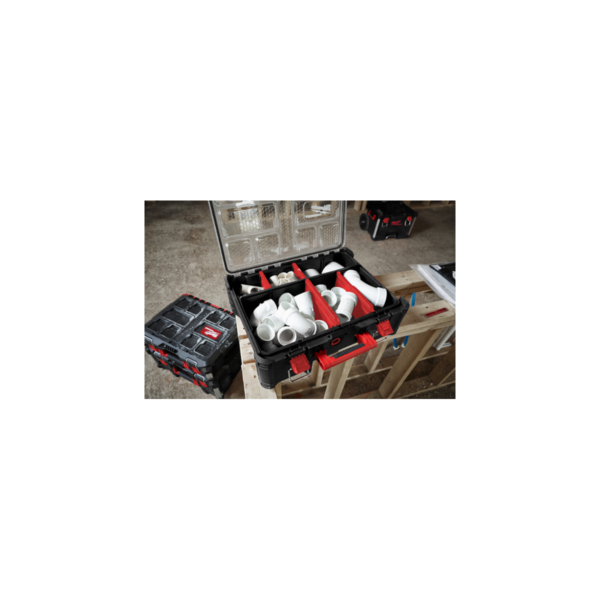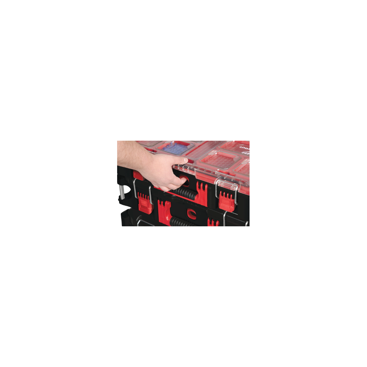 50% più capiente del PACKOUT™ Organiser: ideale per riporre strumenti, batterie, caricabatterie, accessori più grandi e altre attrezzature.