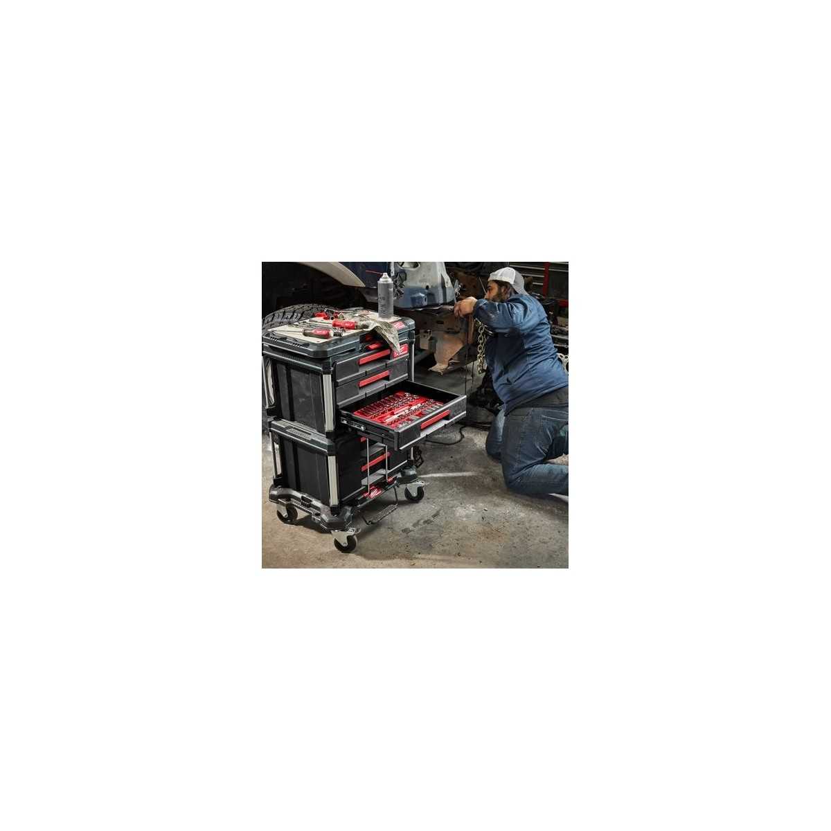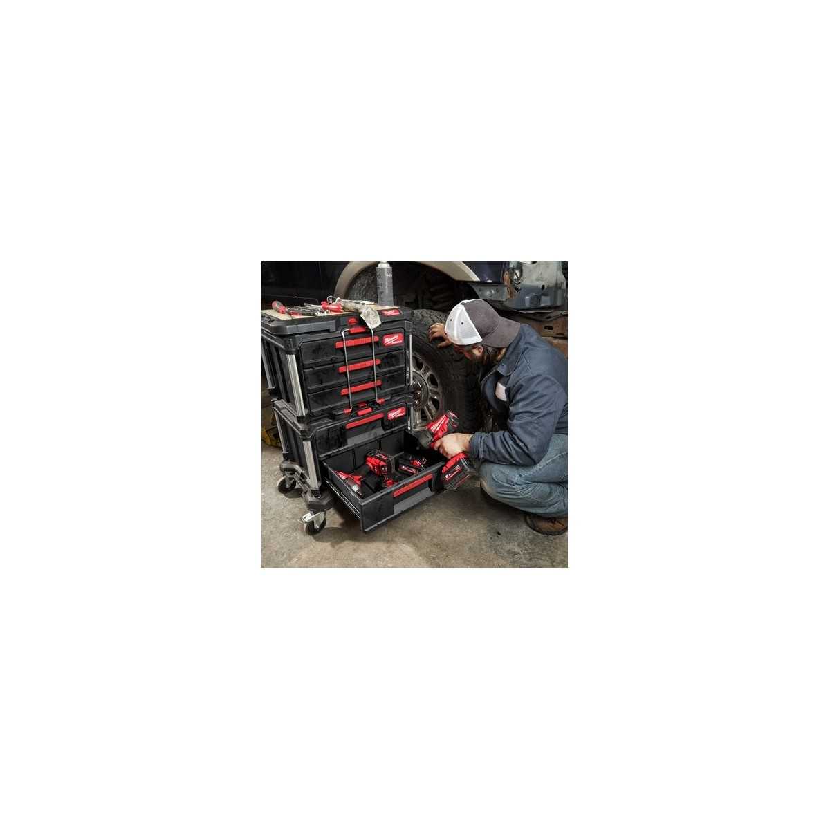 - Include: PACKOUT™ Piano di lavoro, PACKOUT™ Cassettiera portautensili con 2 cassetti, PACKOUT™ Cassettiera portautensili con 3 cassetti, PACKOUT™ Trolley piatto.