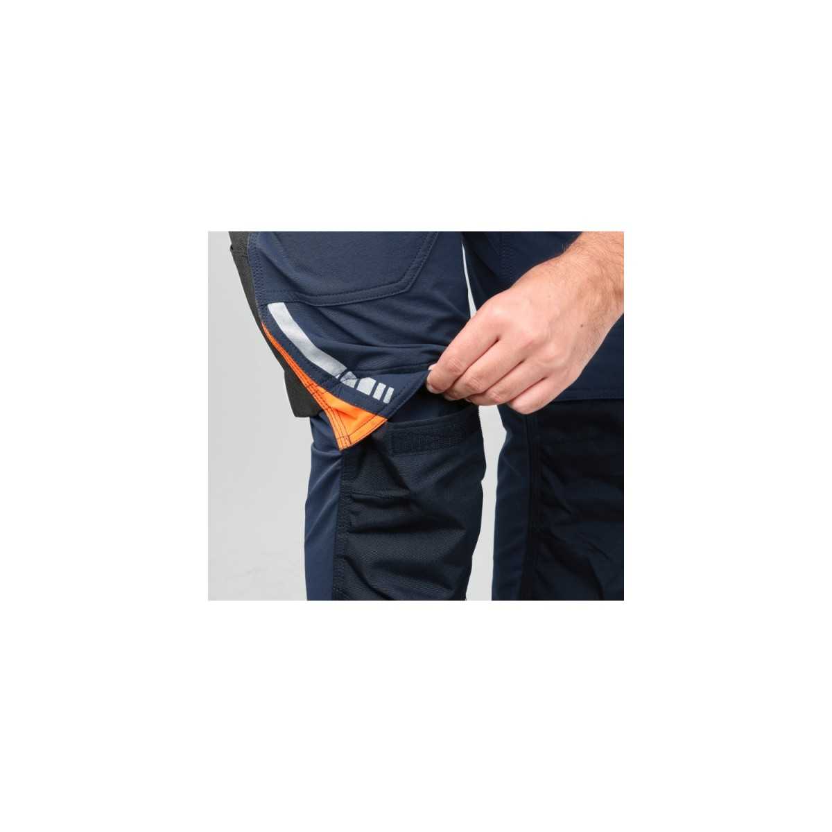 • Tasche per ginocchiere, tasche posteriori e fondo gamba rinforzati in poliestere 600D