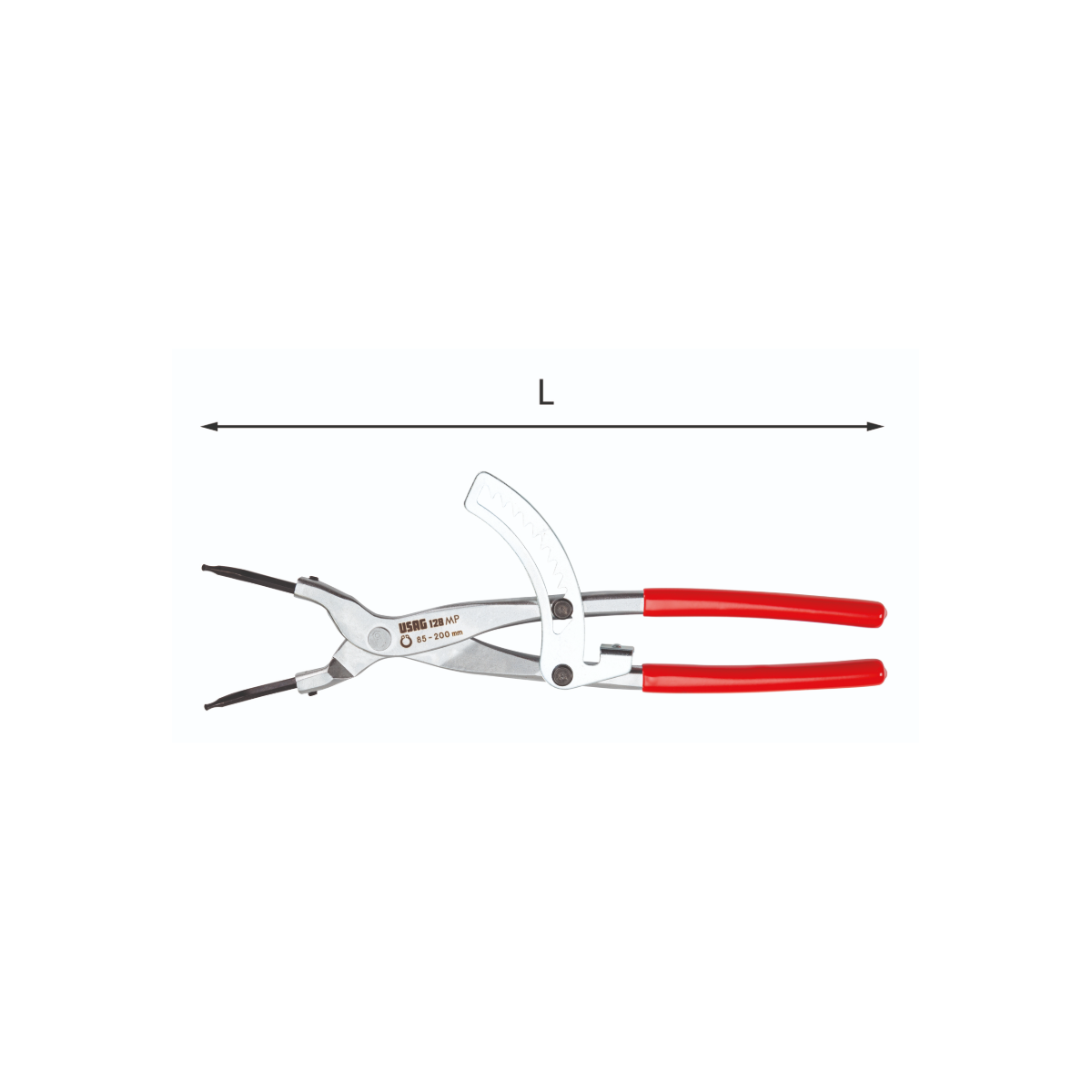 Pinza a cremagliera a becchi piegati a 45° per anelli elastici esterni di grandi dimensioni Usag 128 MP