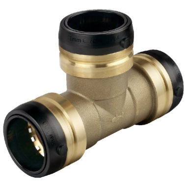 Questa selezione di tee collega tubi di uguali dimensioni con l'operazione rapida e semplice di taglio – spinta – di SharkBite