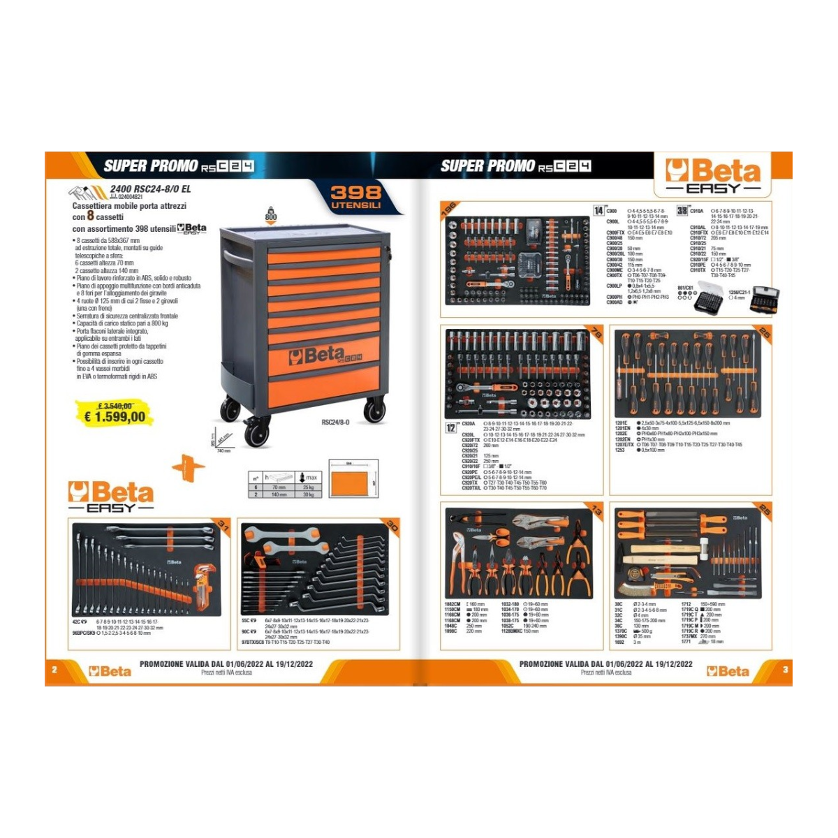 Questa imperdibile promozione Beta 024004821 offre la possibilità di ottenere una cassettiera RSC24 da 8 cassetti completa di ben 7 termoformati con assortimenti di utensili per tutte le necessità, ad un prezzo imbattibile per un periodo limitato.