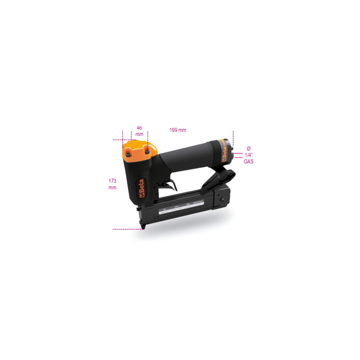 La spillatrice Beta 1945P utilizza spilli tipo B6 (23 Gauge) con diametro da 0,64 mm e lunghezza variabile da 12 a 35 mm.